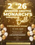 Monarch’s Masquerade Ball and Officer Installation. Live entertainment, raffle, door prizes. $60 per ticket.  See flyer for more details